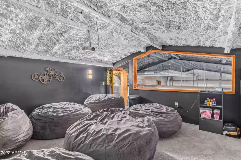 Built in 2016, the dreamy 3,350-square-foot residence features all of the above—along with some very cool secret rooms. Outside, there’s a custom infinity pool with a waterfall, a hot tub, a volleyball court, a built-in barbecue area, and a fire pit.