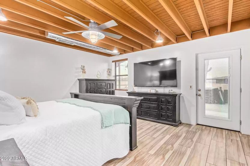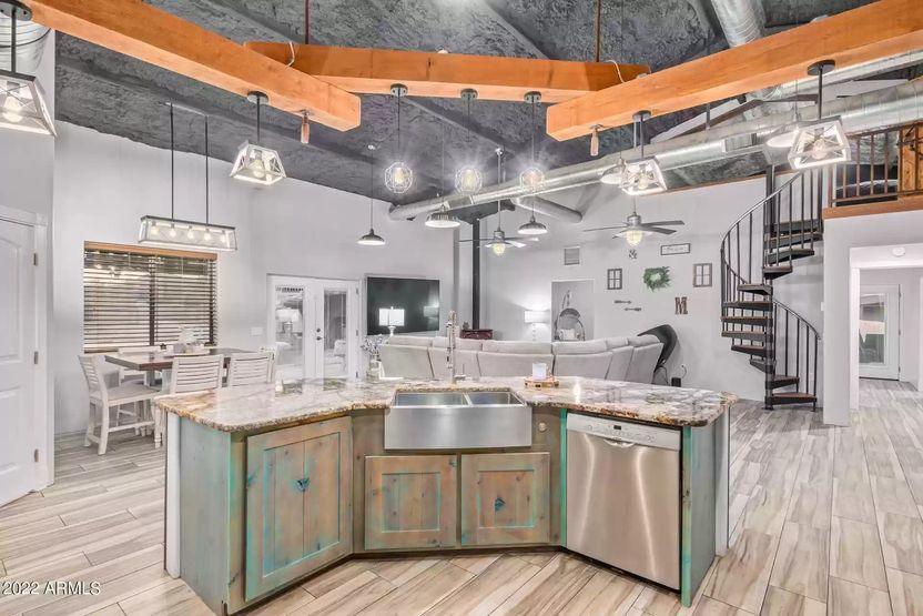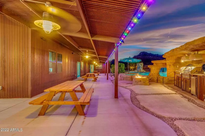 “The original owners owned a shotcrete company and used the outbuilding as office space and lived in the main house,” says the listing agent. Madison Spade, of DPR Realty. “The current owners use the outbuilding to store RVs and dirt bikes and have hosted wedding events here as well. They have really enjoyed the property.”