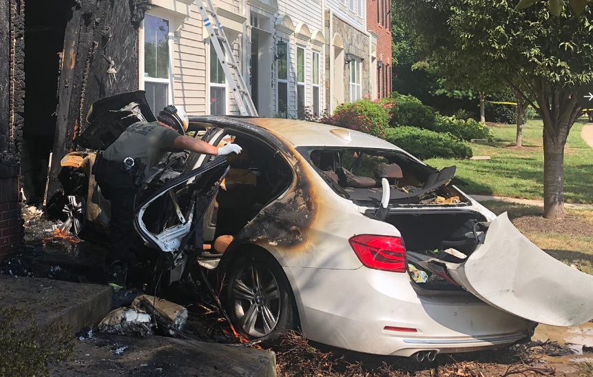 A car crashed into a townhome in Gaithersburg, Maryland, on Aug. 29, 2022.