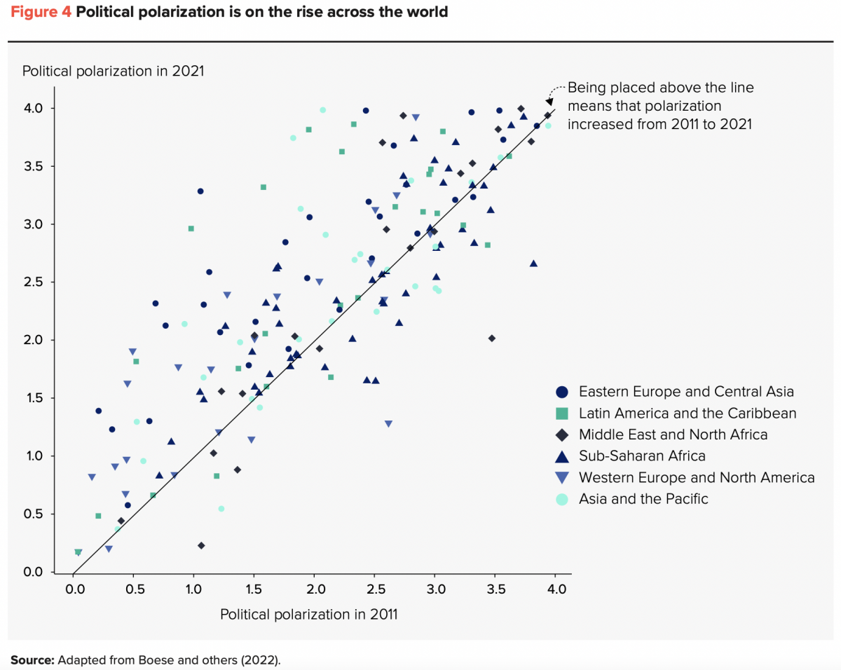- Polarization – The report has not singled out India in its deliberation on growing polarization around the world, but it is no secret that India has become a highly polarized society. Polarization adversely affects human development by leaving “large numbers of people … frustrated by and alienated from their political systems”.